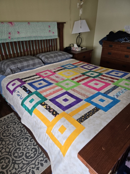 - Queen size quilts, and memory quilts (people provide me their favorite t-shirts, and it becomes a nice comfortable throw of their favorite memories)